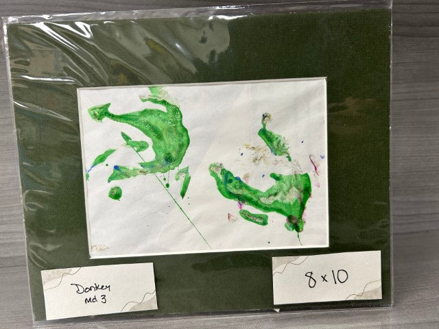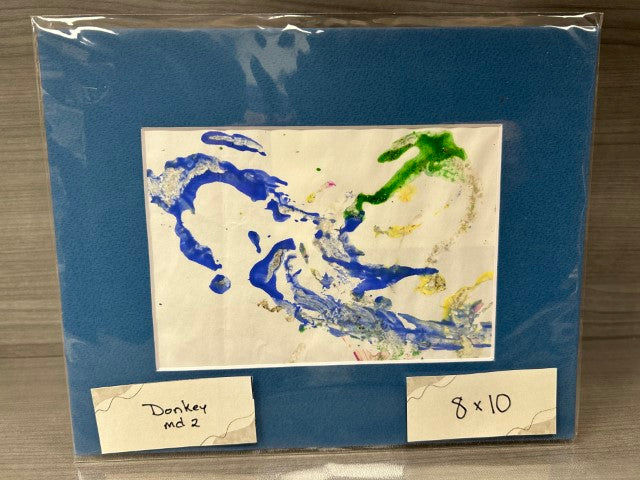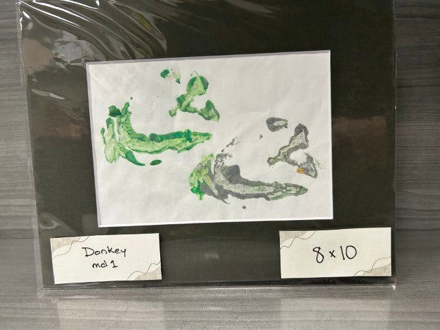Donkeys walk through paint and then across the paper!  Sometimes the paper does rip because they are heavy!  Art includes a Certificate of Authenticity and a photo of the artist.