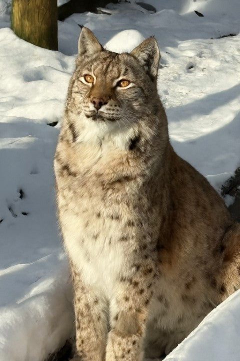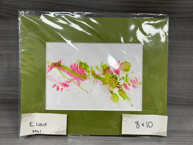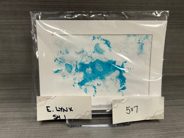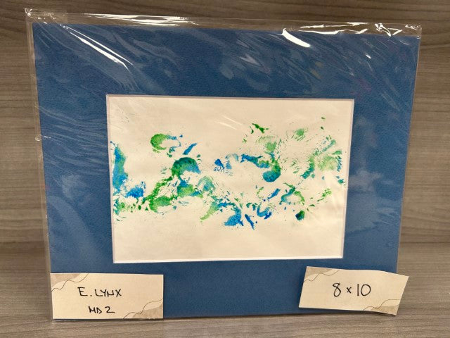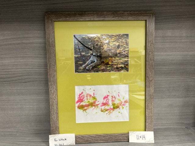 The Eurasian lynx walks through paint and then across the paper! Sometimes he tries to rip up and steal the paper. If you see an absolute perfect print, it was probably taken during a medical procedure. Art includes a Certificate of Authenticity and a photo of the artist.